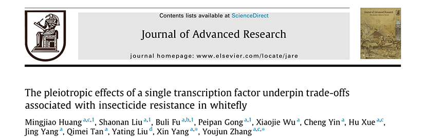 近日,中国农业科学院蔬菜花卉研究所张友军院士团队在知名期刊《Journal of Advanced Research》(IF=12.99)发表题为“The pleiotropic effects of a single transcription factor underpin trade-offs associated with insecticide resistance in whitefly”的研究性论文,揭示了GPCR-MAPK-E75信号轴调控烟粉虱新烟碱类杀虫剂噻虫啉抗性与生殖权衡的分子机制,为蔬菜害虫烟粉虱的抗性监测预警和综合防控提供理论依据。