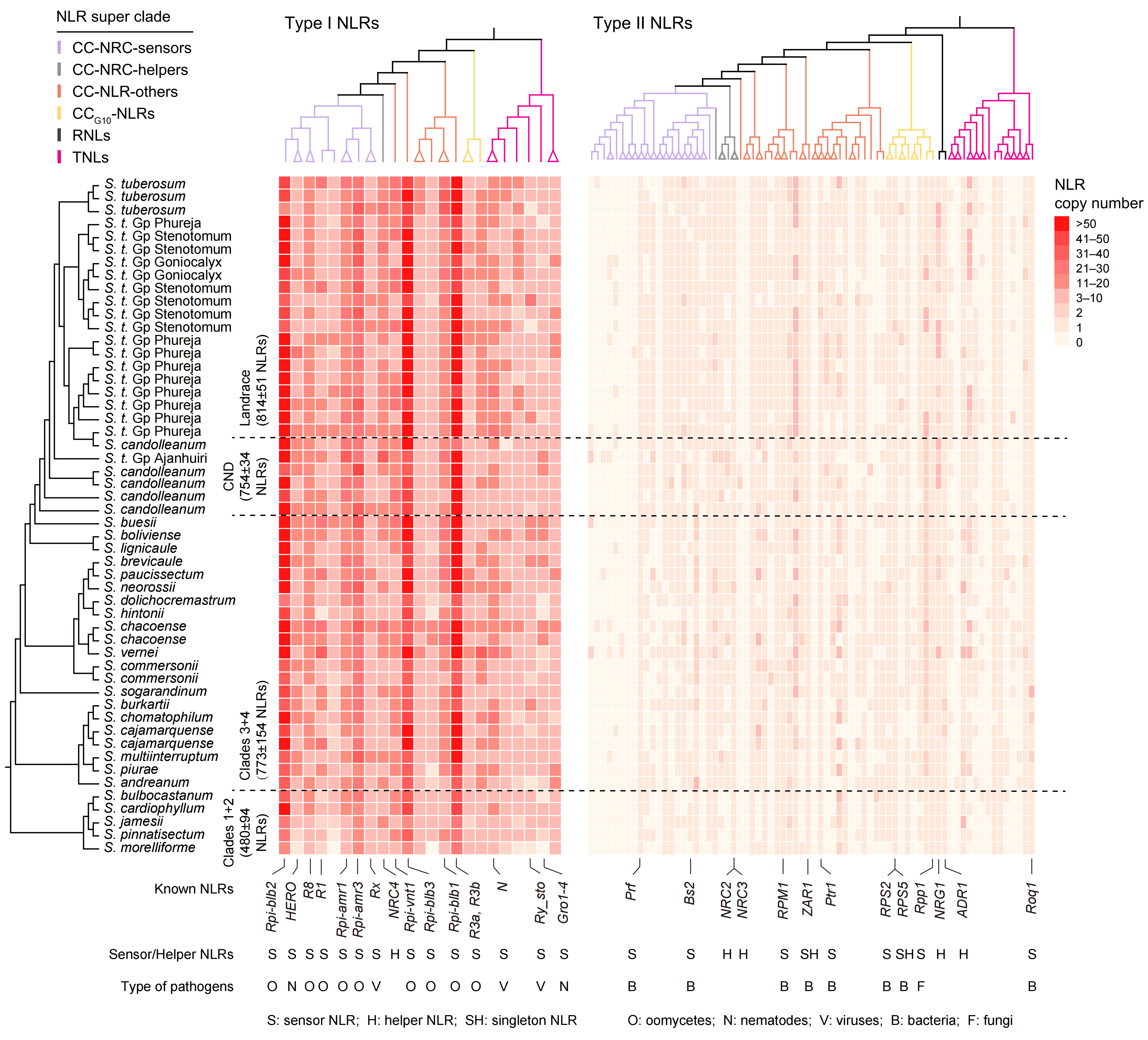图1 | 马铃薯NLRome中Type I和Type II两类抗病基因的演化特征