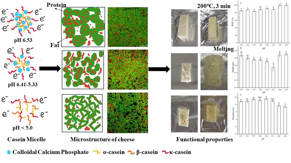 本研究探讨了pH对哈罗米型烧烤奶酪功能特性的影响机制,重点阐明pH如何调节蛋白质相互作用,进而改变奶酪结构与功能性质。
