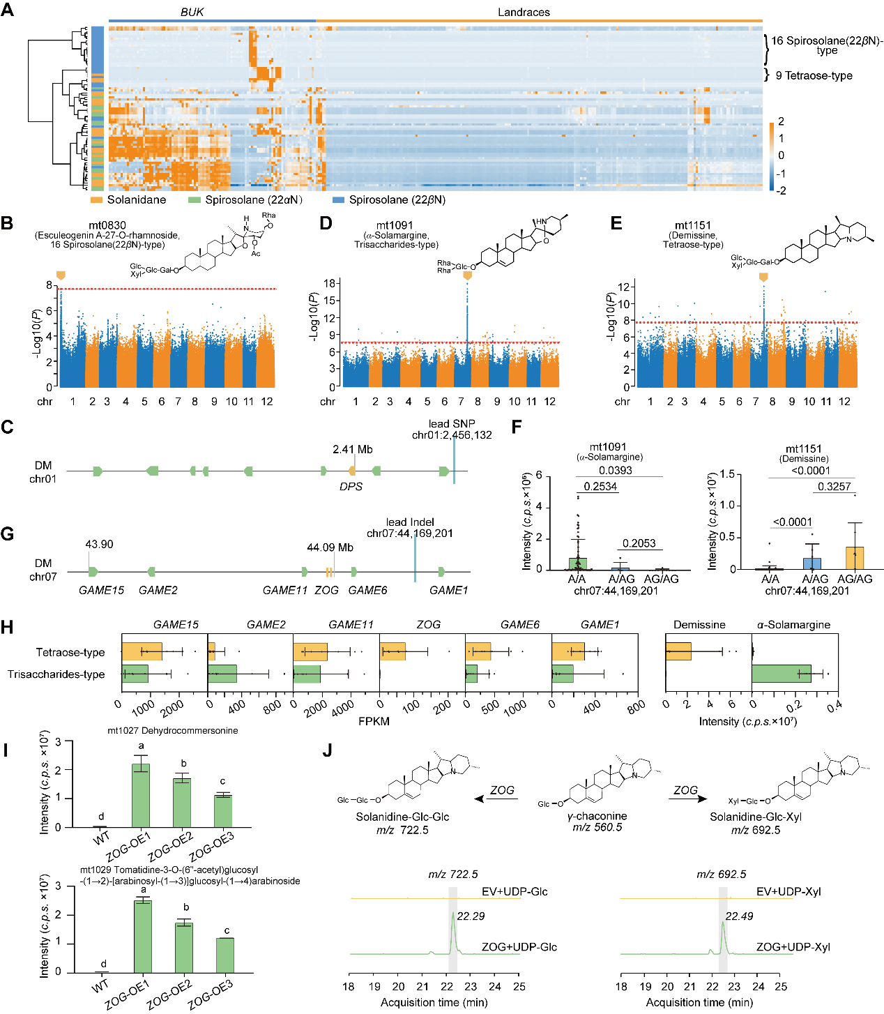 图2|两个生物合成基因调控马铃薯SGA代谢物的结构多样性