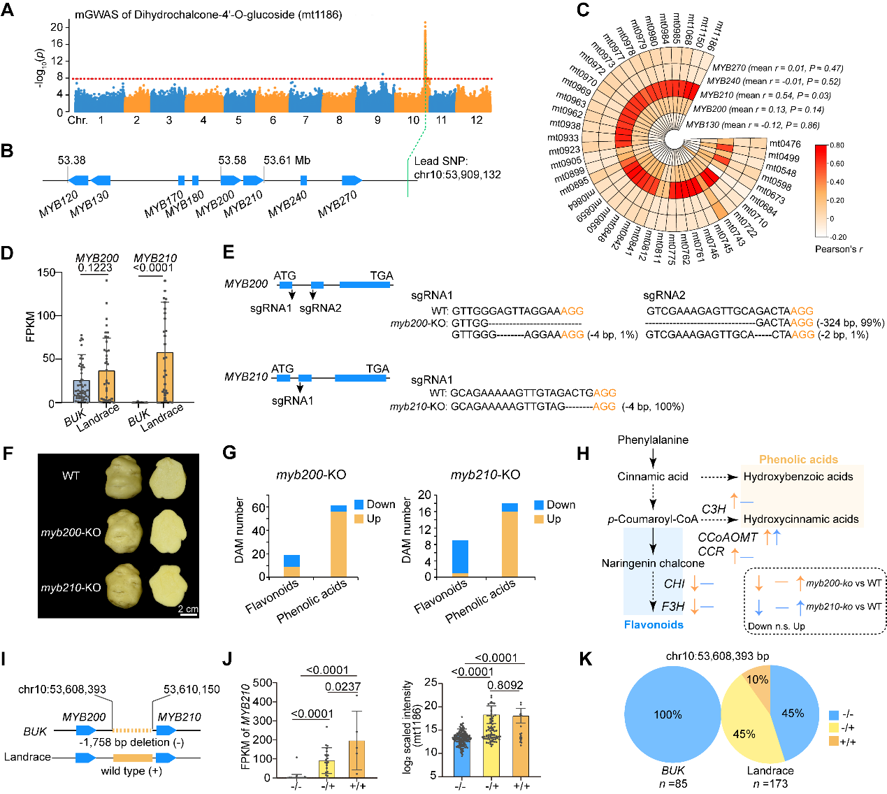 图5|MYB基因调控马铃薯块茎苯丙烷代谢流的遗传选择机制