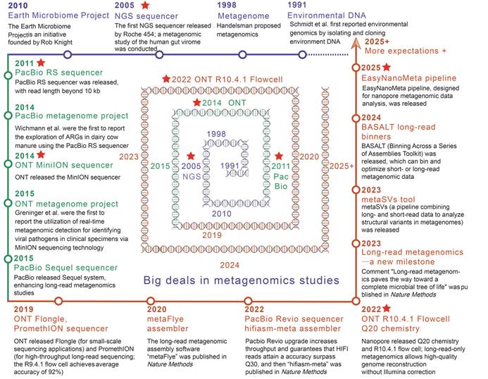 图1|长读长宏基因组学的起源与关键发展